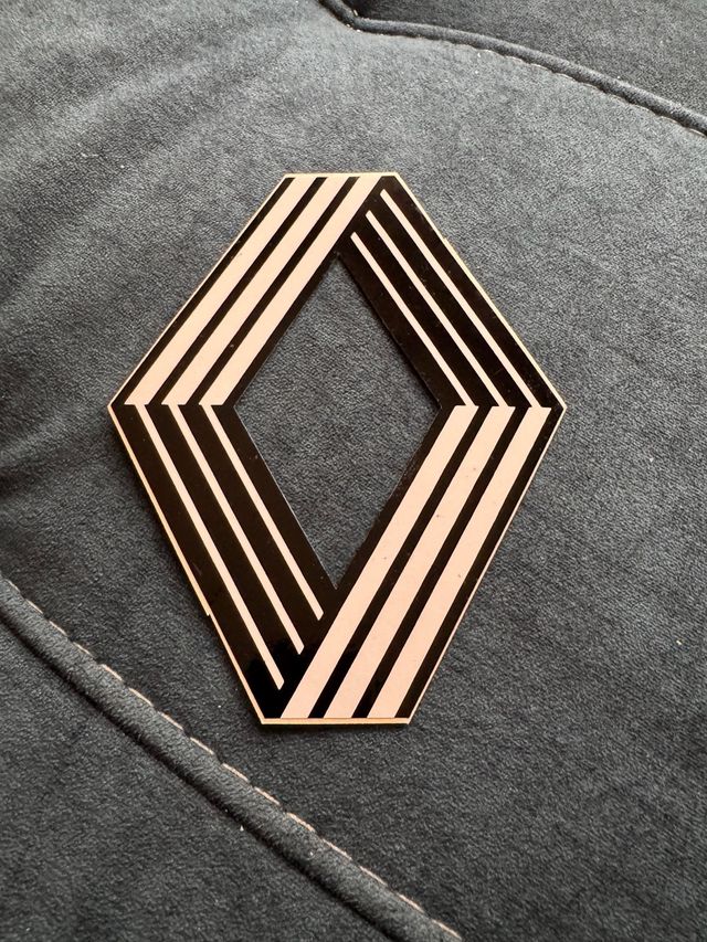 Pegatina con el icónico rombo de Renault, con un diseño vintage. - Diseño a rayas blancas y negras. - Forma de rombo.