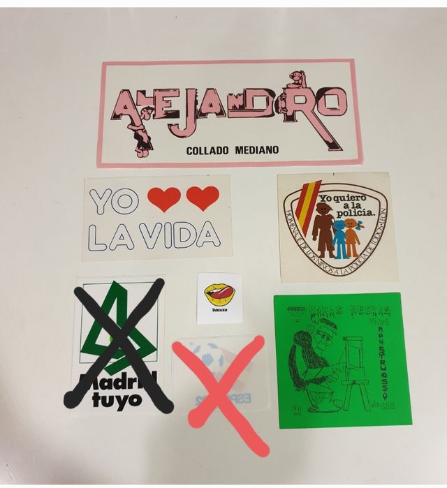 Detalles del productoLote de pegatinas, colección de los años 80, 90... 26 adhesivos de temática variada: Alejandro Collado Mediano, Homenaje de los niños Policía de León, Viaje fin de curso Colegio Damas Negras 1981, eumig, IBM, Salesianos Atocha, Safari Club, Gracias por no fumar Ministerio de Sanidad y Consumo, I love Venecia, RTVE, Walt Disney World, I love Austria, Finamix Racing Team FINA, Como un tren, ESSO, Levanta tu ánimo Prohibido enfadarse, Jabugo, Cobi Mascota JJOO Barcelona 92, Naranjito Mundial Fútbol, Domund...