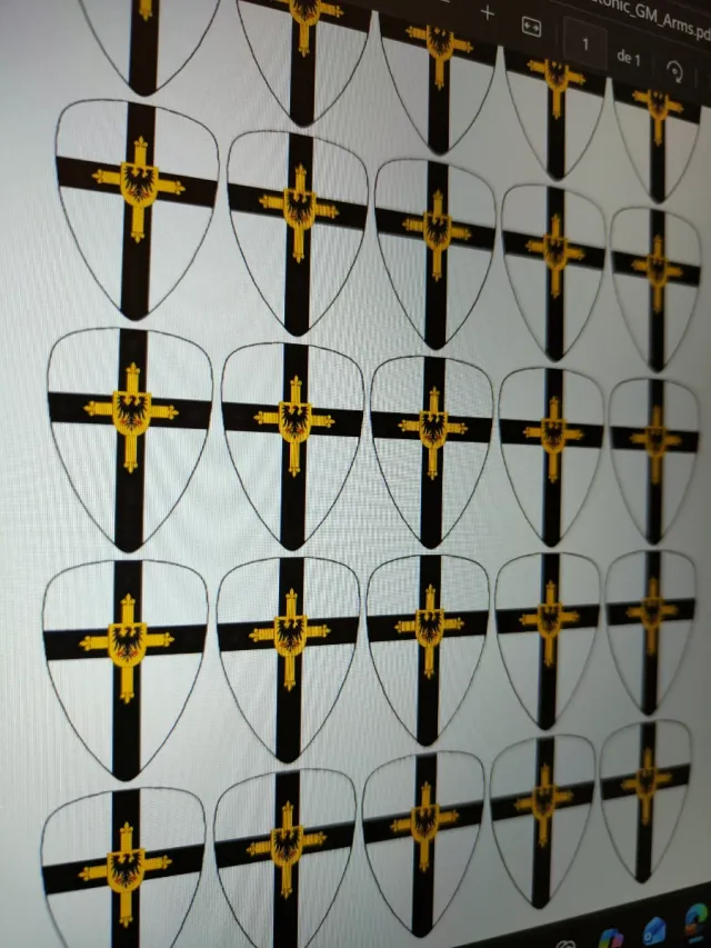Detalles del productoSet de pegatinas con diseños de escudos de la Orden Teutónica, teutones, inspirados en Playmobil. Plantilla con 25 escudos .