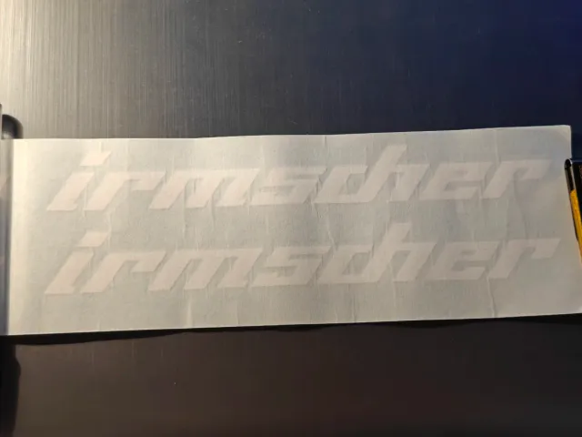 Kit de 2 pegatinas irmscher en vinilo blanco brillo. 25 cm de ancho