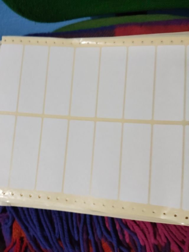 Detalles del productoEtiquetas adhesivas para impresora, perfectas para organizar. Son rectangulares y vienen en un bloque.
