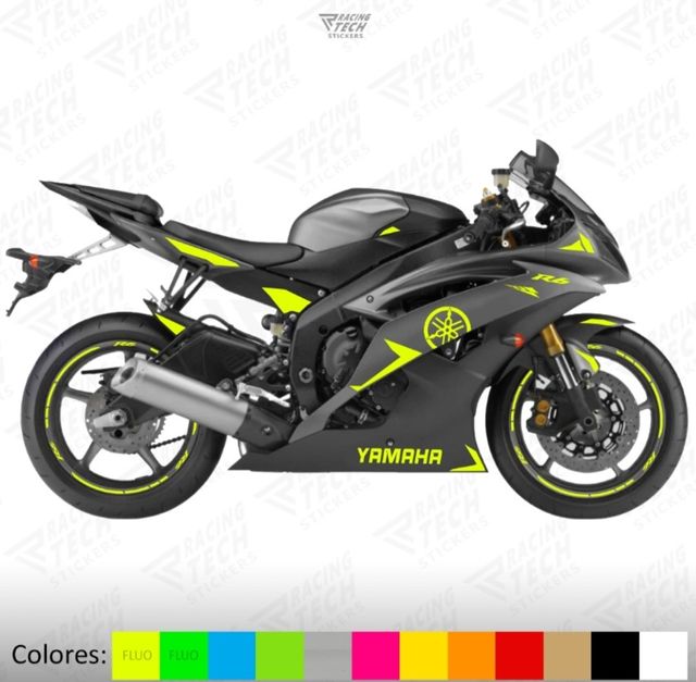 Detalles del productoPegatinas para Yamaha YZF R6, incluye vinilos para llantas y carenado. Además incluye para ambos lados de la moto.