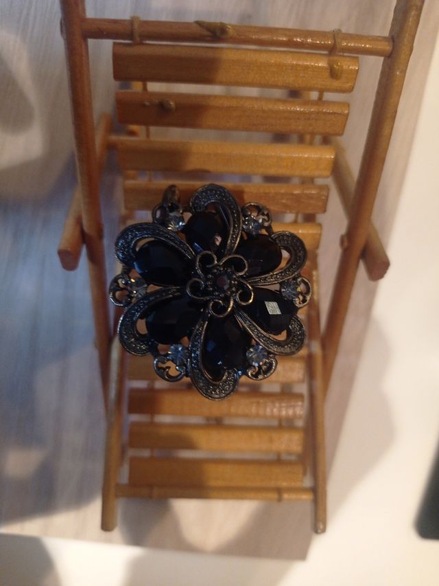 Peineta de cristales negros y plateados