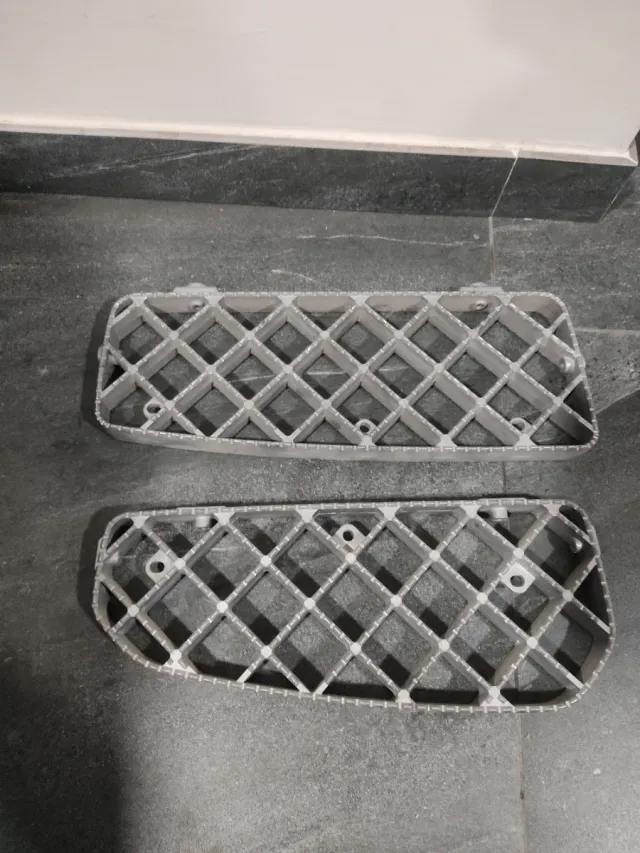 Par de peldaños para camión Scania R. Fabricados en aluminio con un diseño de rejilla. - Material: Aluminio. - Producto nuevo. - Compatibilidad: Scania R.