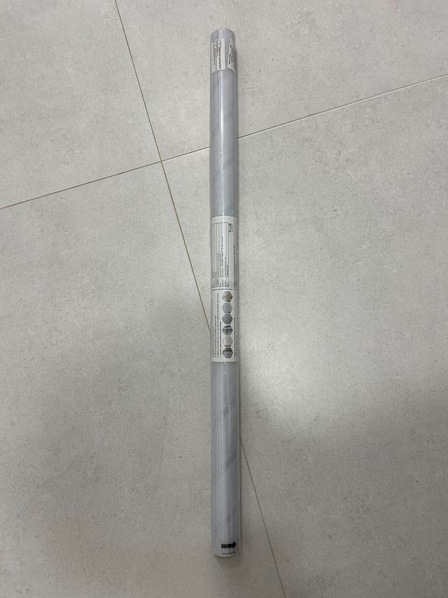 Detalles del productoPelícula de PVC para ventanas con un diseño de mármol gris. Es autoadhesiva y fácil de aplicar.