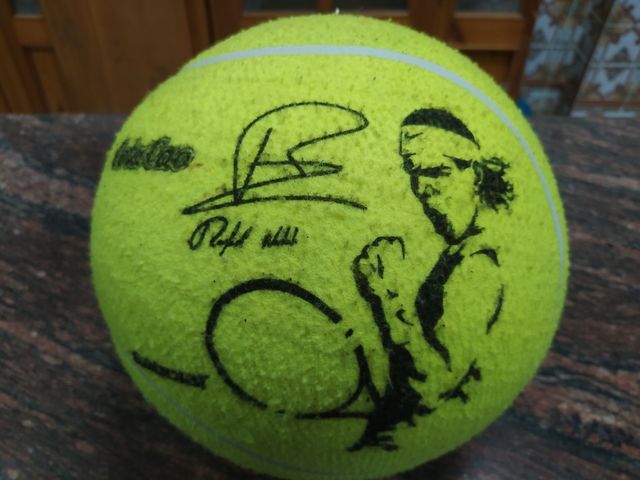 Gran pelota de tenis cola cao firmada por rafael nadal ( expo zaragoza 2008 )