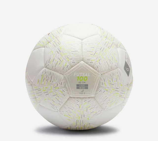 Detalles del productoVendo pelota de futsal Decathlon 100, se ha usado varias veces, pero es totalmente funcional. - Es de color blanco con detalles en gris y verde lima. - Tiene un diseño moderno y ligero. - Mide 63 cm de diámetro y pesa 350 g.