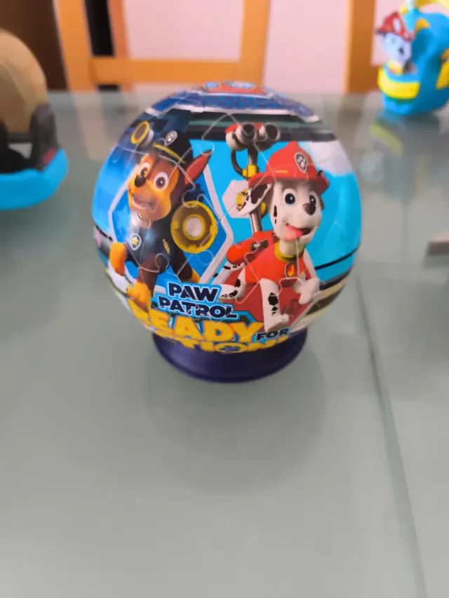 Pelota puzzle de la Patrulla Canina. - Diseño con personajes de la serie. - Base de soporte incluida.