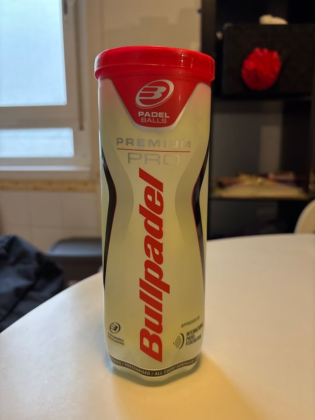 Bote de pelotas de pádel Bullpadel. - Modelo Premium Pro. - Aprobadas por la Federación Internacional de Pádel. - Para todo tipo de superficies.