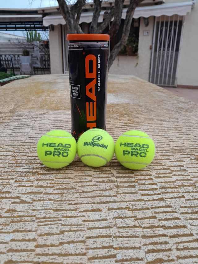 Detalles del producto3 pelotas de padel con su bote.2 marca head padel pro y 1 marca bullpadel.Usadas 1 vez.Pelotas oficiales. Medidas del producto