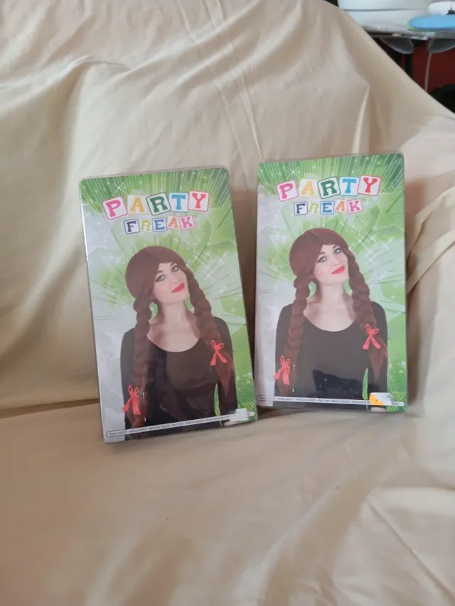 Peluca de disfraz con dos coletas largas y castaña