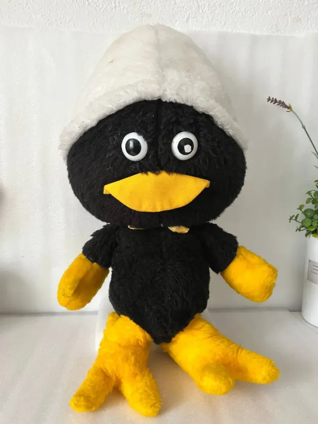 Detalles del productoPeluche Calimero, personaje popular que se originó en Italia y más tarde fue adaptado a una serie de anime japonesa en la década de 1970.