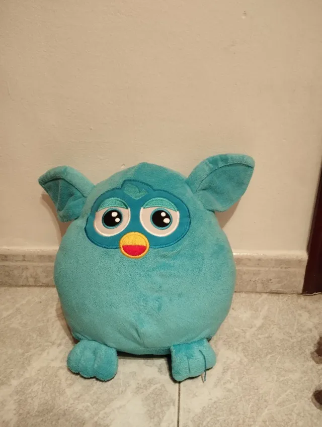 Peluche suave y tierno con forma de Furby. - Color azul. - Ojos grandes y expresivos. - Orejas características de Furby.