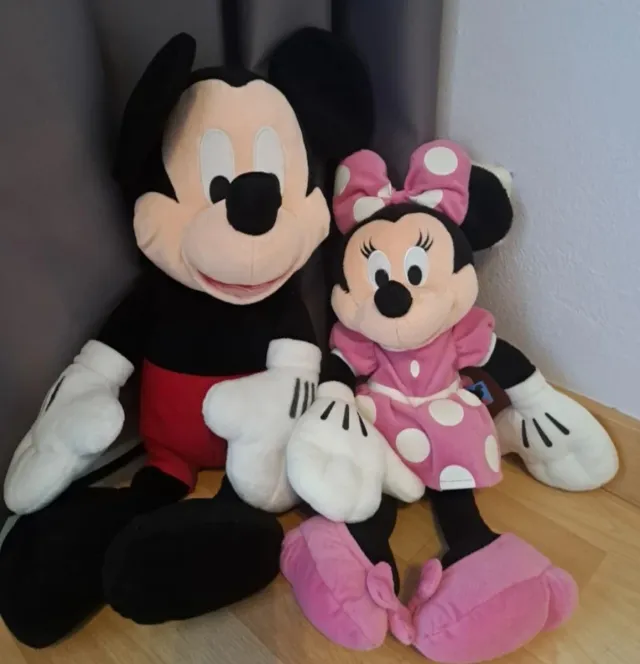 Set de peluches de Mickey y Minnie Mouse, perfectos para los fans de Disney. Son suaves y de gran tamaño. - Peluche de Mickey Mouse. - Peluche de Minnie Mouse.