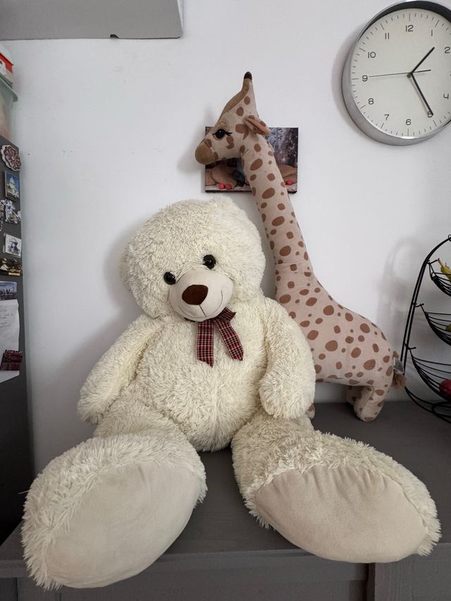 Set de peluches que incluye un oso blanco y una jirafa. - Oso de peluche grande y suave. - Jirafa con estampado de manchas.