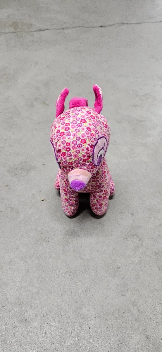 Adorable peluche con un divertido estampado floral. - Diseño de perro. - Predominan los colores rosa y morado. - Orejas y nariz destacadas.