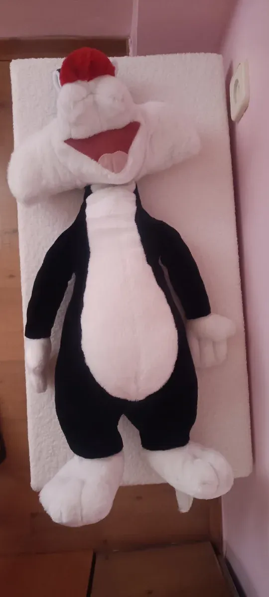 Peluche del personaje Silvestre. - Diseño clásico del personaje. - Material suave y tierno al tacto. - Ideal para coleccionistas o como regalo.