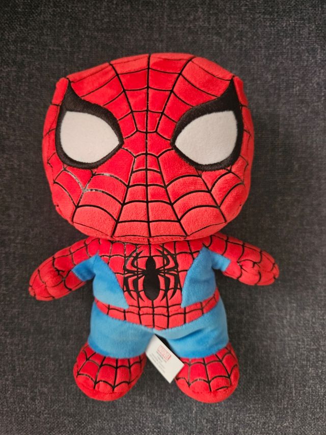 Peluche suave del personaje Spiderman. - Diseño clásico de Spiderman. - Colores rojo y azul. - Detalle de telaraña.