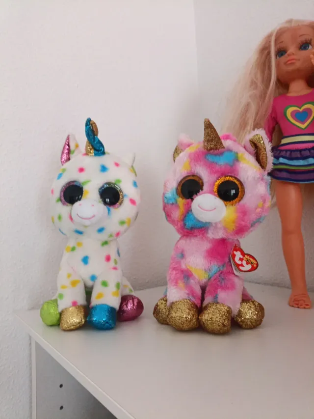 Detalles del productoAdorable peluche de unicornio con un diseño colorido y brillante.