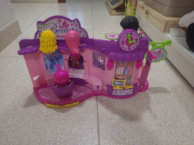 Detalles del productoPreciosa peluquería y spa de Pinypon, en color rosa y morado. ¡Ideal para peinar y mimar a tus muñecas!