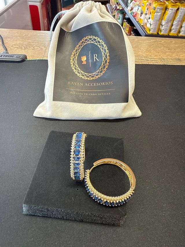Pendientes Aro Bañados en Oro 14k con Zafiros Azul