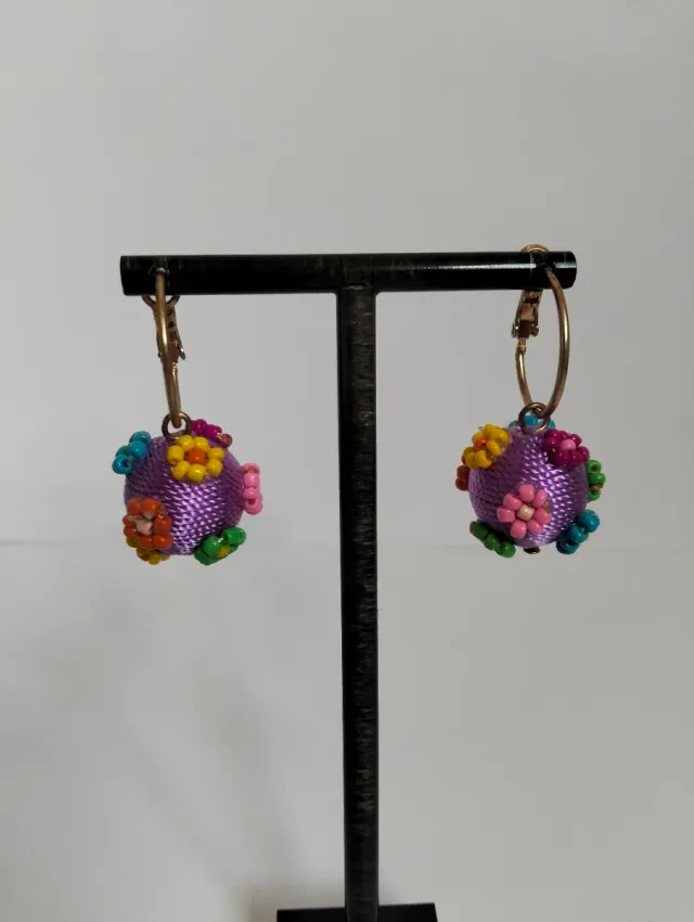 Pendientes aro bola flores cuentas colores