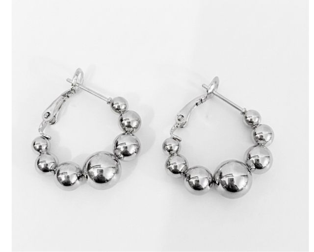 Pendientes aro con cuentas plateadas