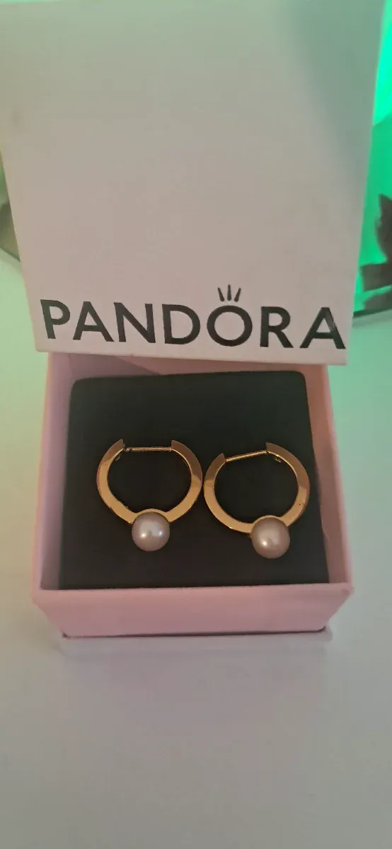 Pendientes Aro Pandora Oro 14k Perla Cultivada