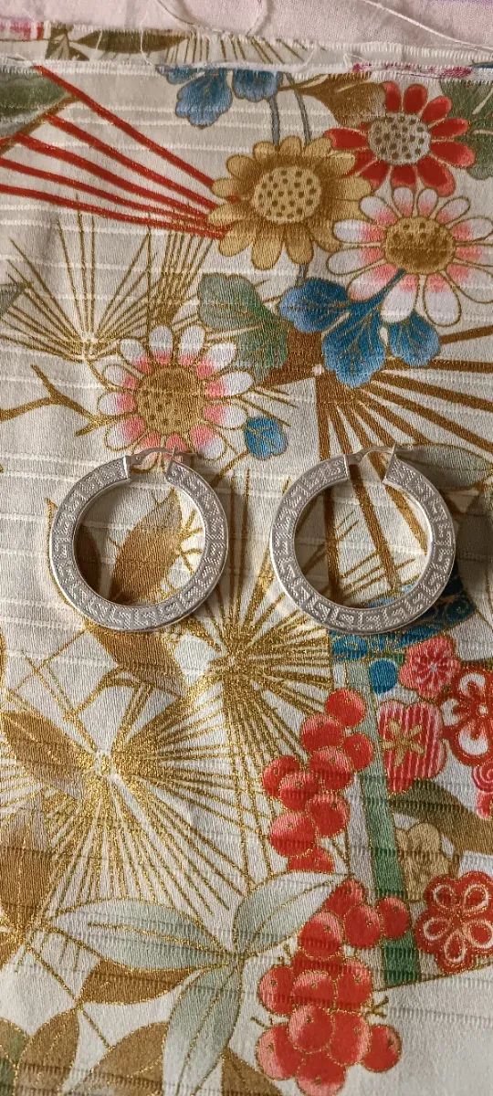 Elegantes pendientes de aro en plata con un diseño grabado.
