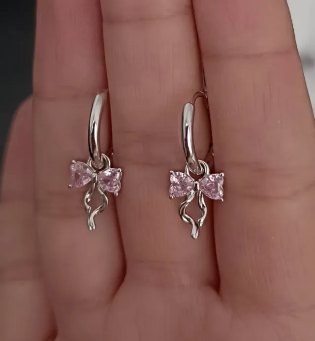 Pendientes Aro Plata con Lazo Rosa