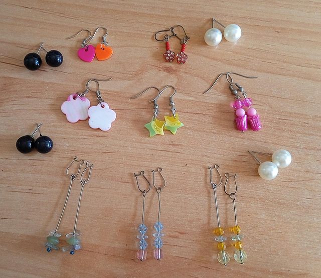 Pendientes artesanales hechos a mano TOTALMENTE NUEVOS. Diferentes diseños. 2 pares de bolas negras y 2 pares de bolas blancas. Para niña o mujer