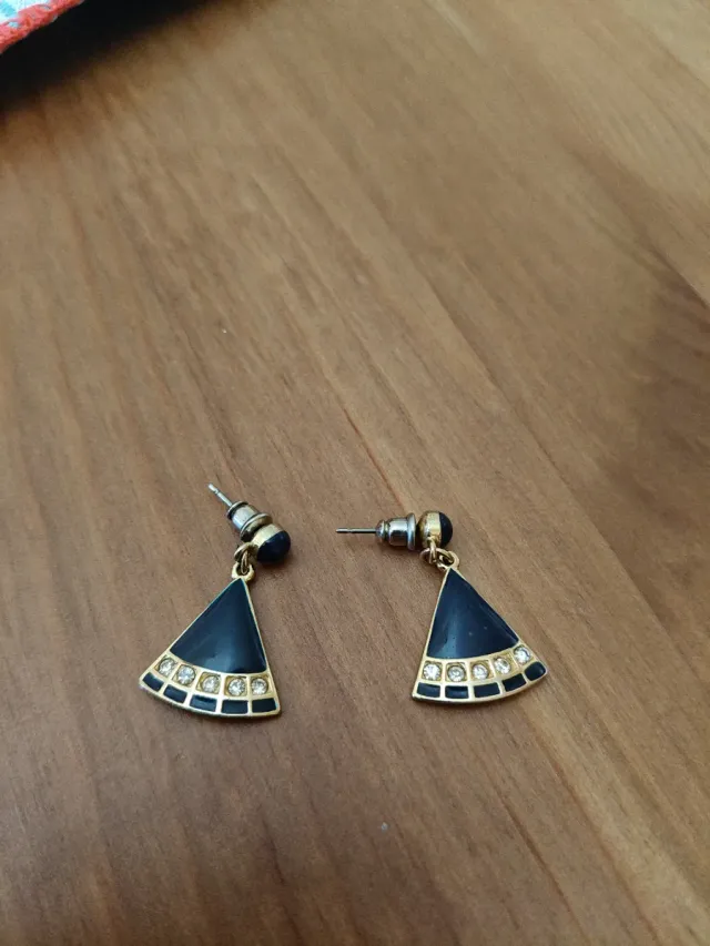 Pendientes bisutería triángulo negro y dorado