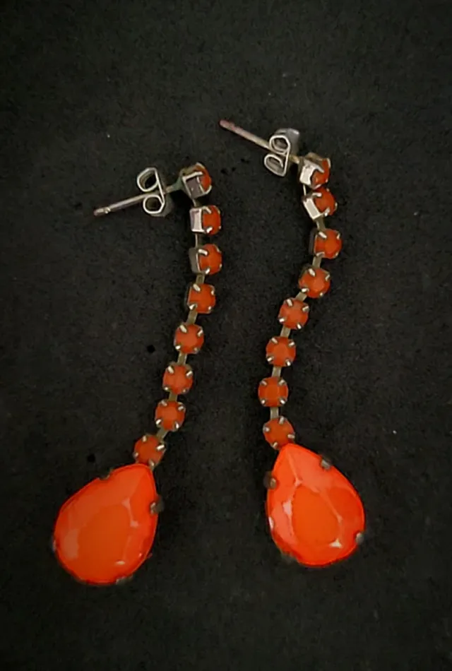 Pendientes Bonitos Cristales Naranja Plata