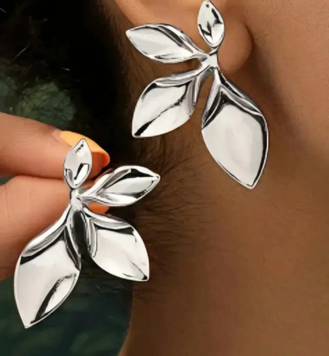 Pendientes Botón Plateados Diseño Hojas