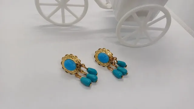 Pendientes Chapado Oro 18k Turquesas Camafeo