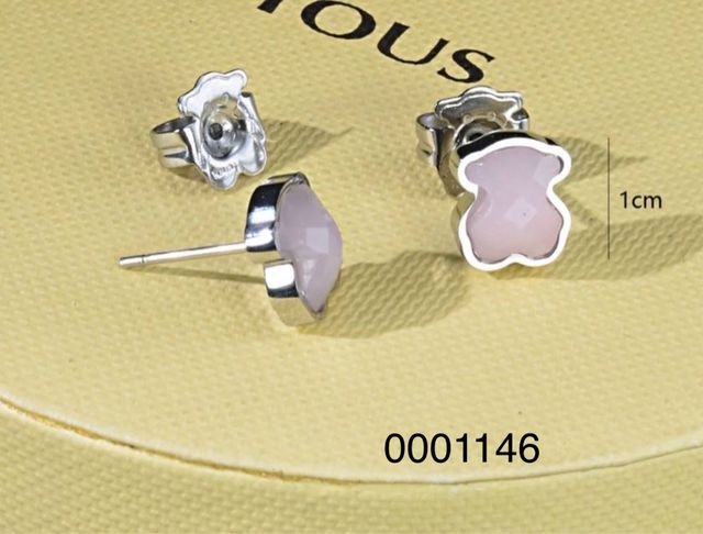 PENDIENTES CON DISEÑO DE OSO CON PIEDRA ROSA