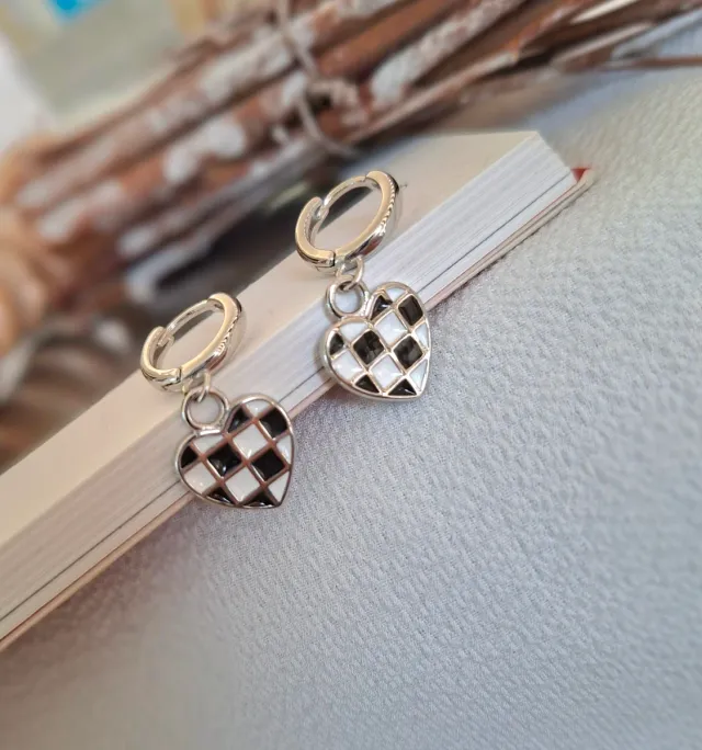 Pendientes Corazón Plata Ajedrez