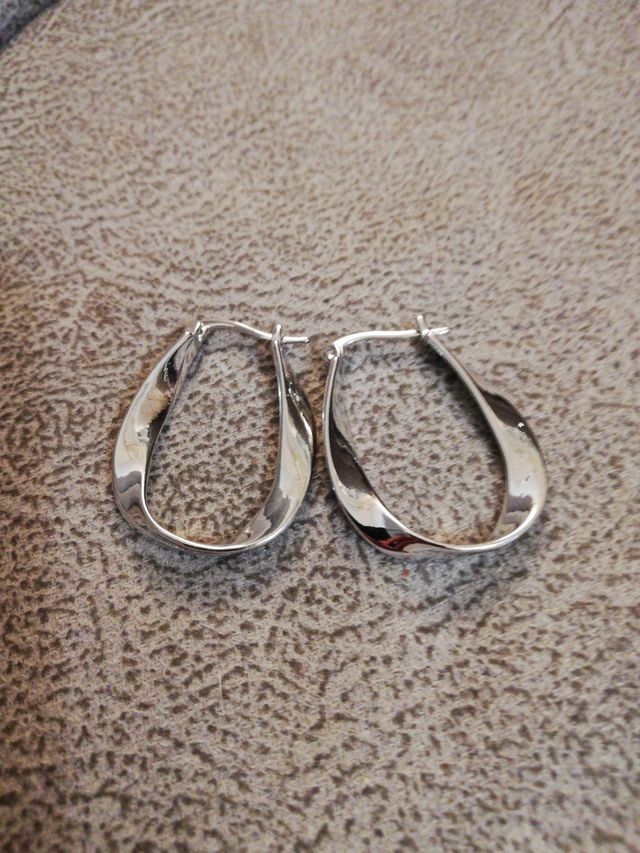 Pendientes de aro retorcidos de plata tamaño medio