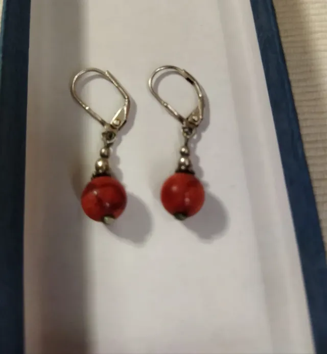 Pendientes de coral rojo y plata 925