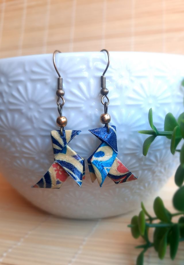 Pendientes de origami pajarita