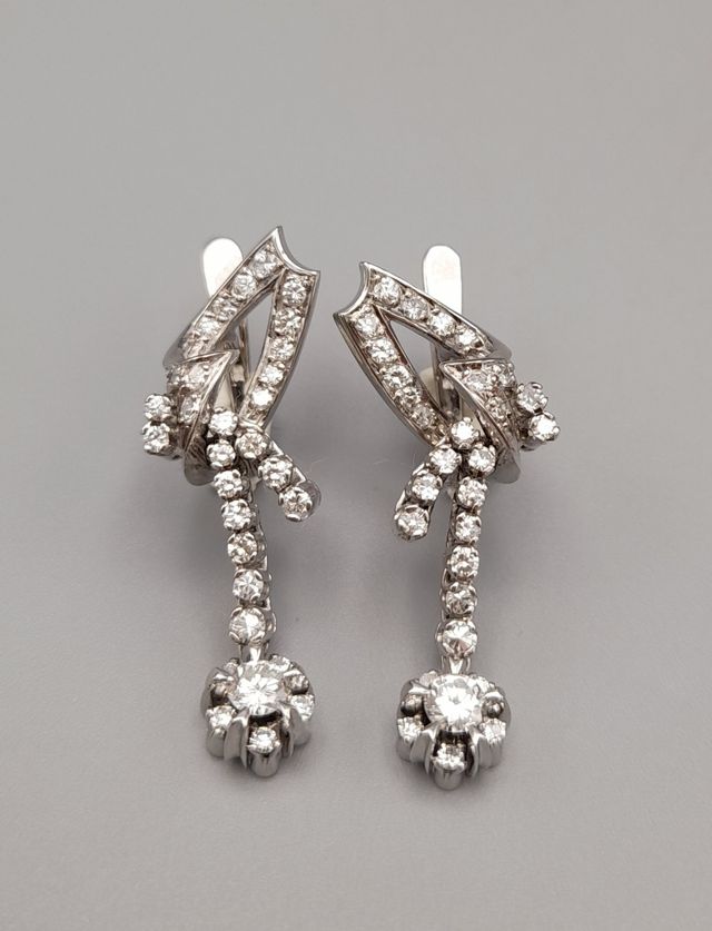 Detalles del productoPendientes de oro 18kt con Diamantes talla Antigua, peso 12,32gr, Diamantes 2x0 20ct, 2x0,4ct, 10x,03ct, 14x0,2ct. Joyería Zimt&Pfeffer Barcelona dirección calle Bori i Fontesta 13. teléfono WhatsApp 644592862. sem 52/23. STX.