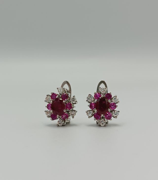Detalles del productoPendientes de oro blanco de 18kt. Brillantes 8×0'03ct. y zafiros. Peso 8'41gr.