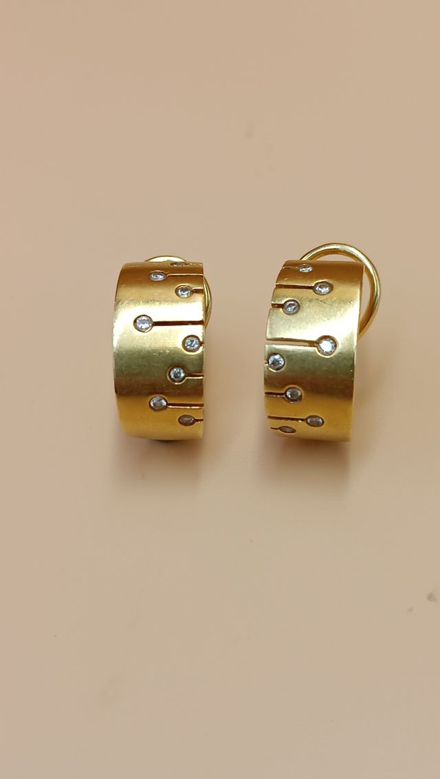Detalles del productoPendientes de oro de 18kt y brillantes. 16×0'01ct. Peso 9'41gr. Joyería Zimt & Pfeffer Viladecans, dirección calle Mare de Deu de Montserrat 19. Teléfono WhatsApp 644037784. Sem. 04/25.