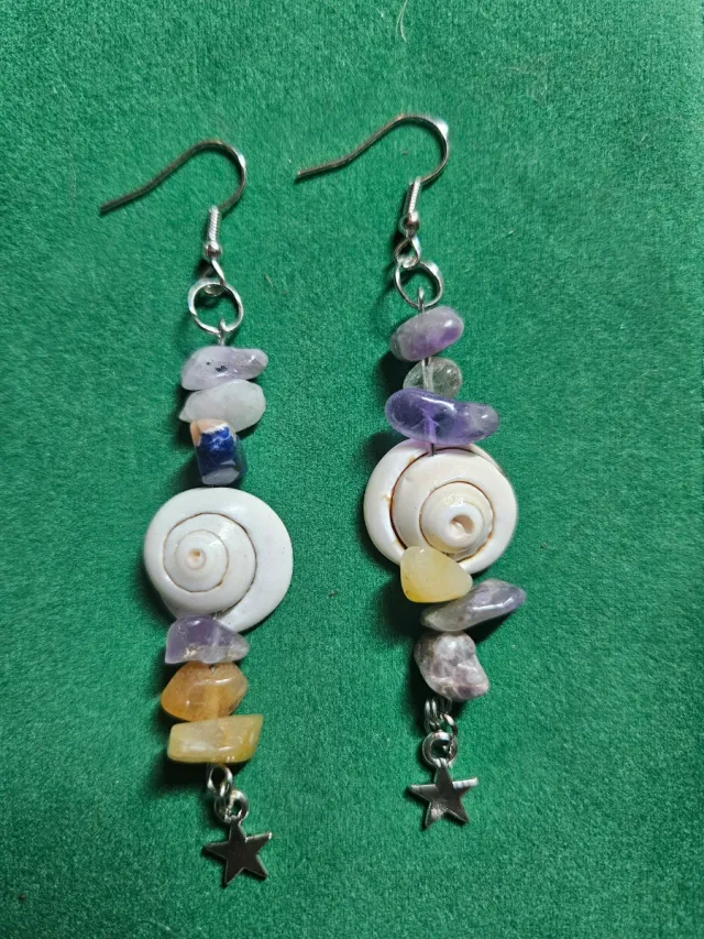 Pendientes de piedras naturales y conchas