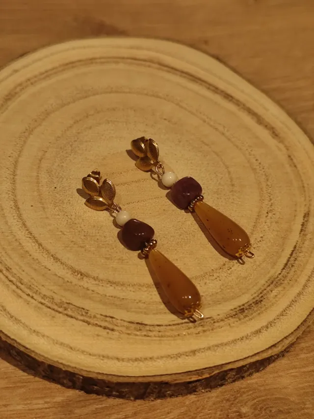 Pendientes flamenca ámbar y marrón