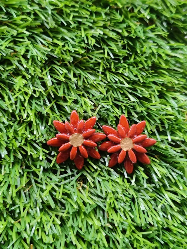 Pendientes flor rojos y marrones
