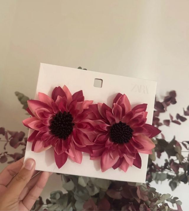 Pendientes flor Zara rosas y negros
