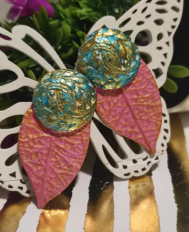 Pendientes hoja rosa