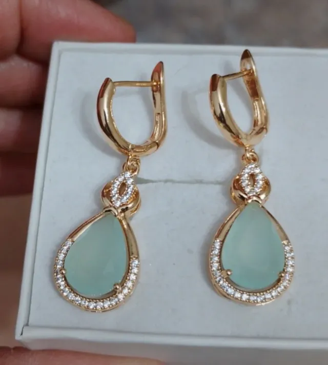Pendientes lágrima verde chapado oro