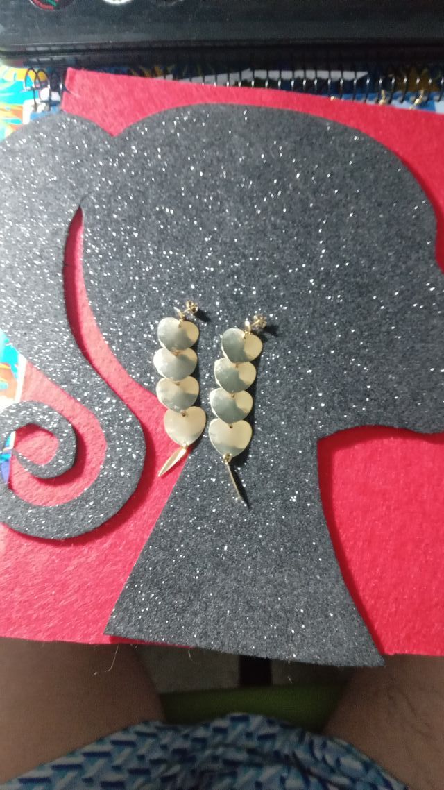 Pendientes largos de corazones dorados